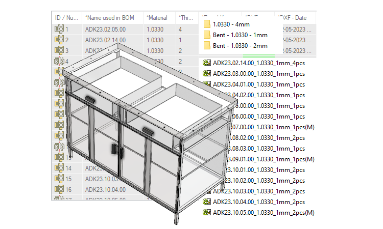 In addition to supporting standard capabilities, i.e. entering SOLIDWORKS® formulas (e.g. $PRP:"SW-File Name") and / or values from predefined selection lists, this macro has been equipped with a number of functions that automate assigning properties that you will not find anywhere else. This includes: Qty., To the left/right of File name, To the left/right of Folder name, Numbers, Copy from cut lists, Copy from material, Folder name, My Parent, Active Document, MyID, From File name.