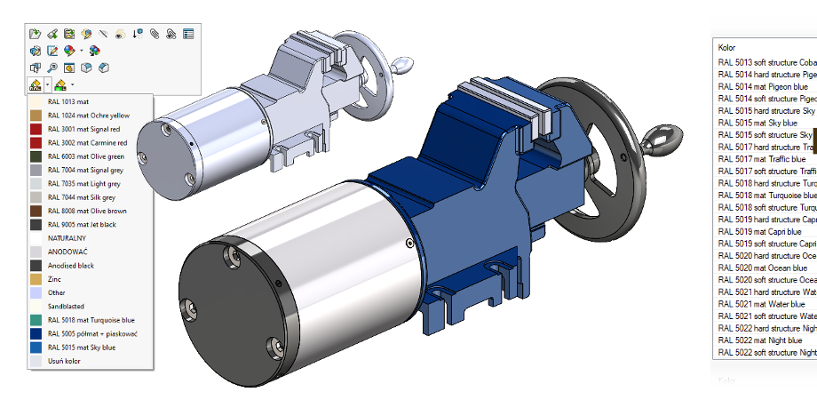 Przypisanie właściwości można uzależnić od tego, czy komponent jest częścią, złożeniem, blachą czy profilem.