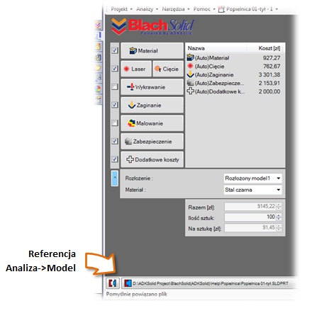 Do analizy kosztów wytwarzania z wykorzystaniem dodatku BlachSolid można podejść na trzy różne sposoby.