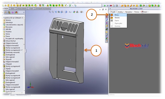 Po zainstalowaniu dodatek BlachSolid uruchamia się w nowym panelu „Okienka zadań”