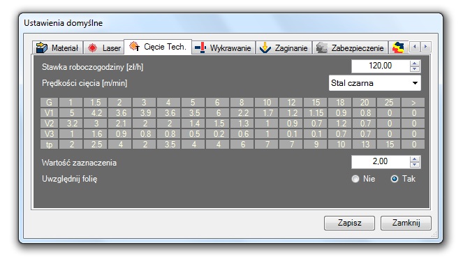 Kalkulator „Laser” został w pełni dostosowany do szacowania kosztu cięcia laserem.